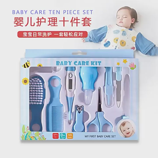 10-Piece Baby Care and Grooming Kit with Hair Brush, Comb, Nasal Aspirator, Digital Thermometer, Nail Scissors, Nail Clipper, Medicine Dropper, Nail File, Nose Tweezer, and Nail Clipper Cover