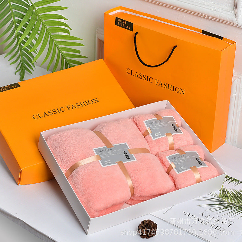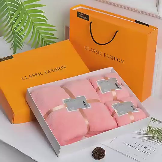 3-in-1 Soft Towel Set for Mother and Baby with Package Bag | Absorbent Coral Fleece Baby Bath Towels Gift Set