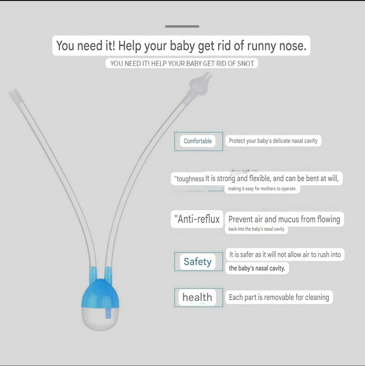 BPA-Free Baby Nasal Aspirator Set with Mouth Section | Anti-Backflow Nasal Aspirator Kit with Safety Filter