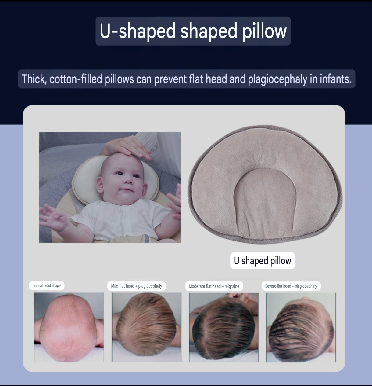 Soft, cotton-filled pillow helps reduce pressure on baby’s head and supports natural head shape. -